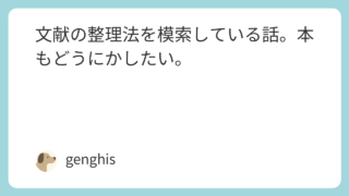 日記 文献の整理法を模索している話。本もどうにかしたい。 毎日日記を書くキラキラ生活にしたいので頭を絞って書くことを考えています。中身のない日常だと「天気エグい!!!!」くらいしか引き出しがなくなるので、なんとかしてアクティブになりたいです。文献を紙で管理したい論文管理は紙一択卒論を真剣に書きたい... 2026.04.05 日記